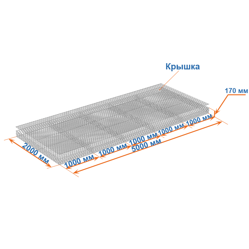 Матрасы Рено 5x2x0,17 — плоские габионные секции из сетки двойного кручения с ячейкой 60х80, проволокой 2,2 мм и покрытием Цинк.