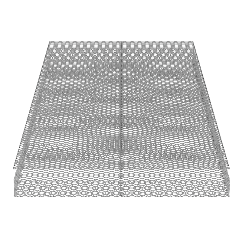 Матрасы Рено 5x2x0,23 — плоские габионные секции из сетки двойного кручения с ячейкой 80х100, проволокой 2,7 мм и покрытием Цинк.