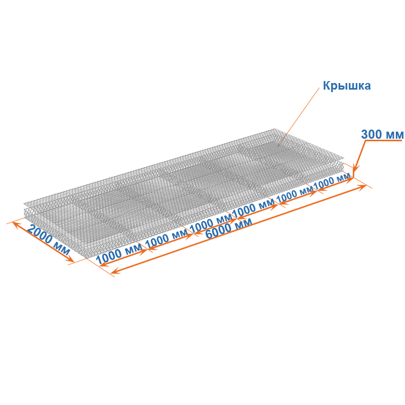 Габион матрац ГСИ-М 6х2х0,3 оцинкованный, Ø проволоки 2,2 мм, размер ячейки 6х8 см