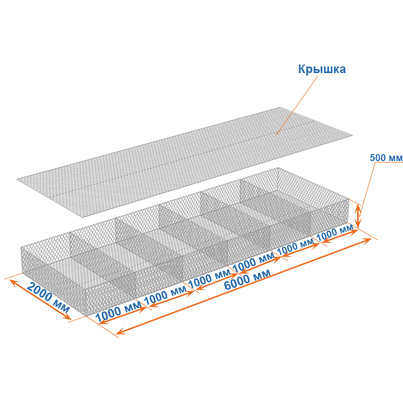 Габион матрац ГСИ-М 6х2х0,5 оцинкованный, Ø проволоки 3,0 мм, размер ячейки 8х10 см