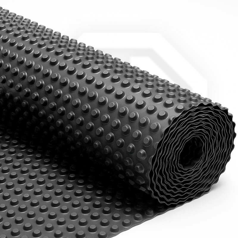 Мембрана Изостуд МС изготавливается из полиэтилена высокой плотности. Она представляет собой полотно, на поверхности которого расположены усеченные конусы.